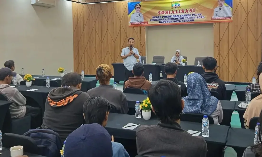 KOTA SERANG – Badan Pendapatan Daerah (Bapenda) Kota Serang menggelar sosialisasi program pemutihan pajak kendaraan bermotor di salah satu rumah makan di Kota Serang, Selasa (6/5/2025). Kegiatan ini dihadiri oleh warga dari wilayah Kecamatan Cipocok Jaya dan sekitarnya.