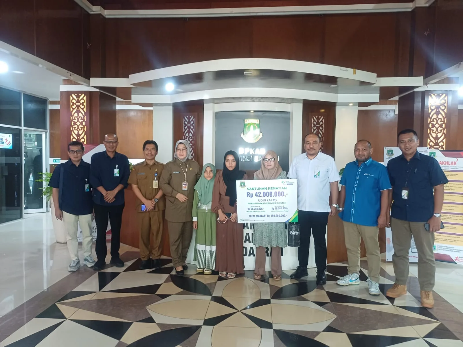Penyerahan simbolis dilakukan oleh Kepala BPJS Ketenagakerjaan Kantor Wilayah Banten, Eko Yuyulianda, didampingi Kepala BPJS Ketenagakerjaan Cabang Serang, Uus Supriyadi, serta Kepala BPKAD Provinsi Banten, Rina Dewiyanti, dan Sekretaris BPKAD Banten, Agus Setiyadi. Santunan kematian sebesar Rp42 juta telah langsung ditransfer ke rekening istri almarhum, Yanti.
