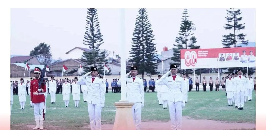 Sebelum berlangsungnya upacara, panitia pelaksana langsung mengumumkan para pemenang berbagai kegiatan yang telah dilaksanakan sebelum dan pada saat peringatan HUT RI ke – 80, termasuk pawai keliling. (Erianto Perangin-Angin)