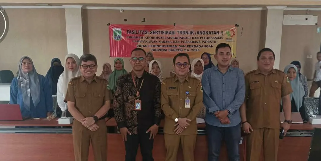 Banten, Djawaranews.com – Dinas Perindustrian dan Perdagangan (Disperindag) Provinsi Banten menyelenggarakan kegiatan Sosialisasi dan Sertifikasi Tingkat Komponen Dalam Negeri (TKDN) bagi pelaku Industri Kecil dan Menengah (IKM). Kegiatan ini berlangsung di Aula Rapat Disperindag Provinsi Banten, Senin (5/5/2025).
