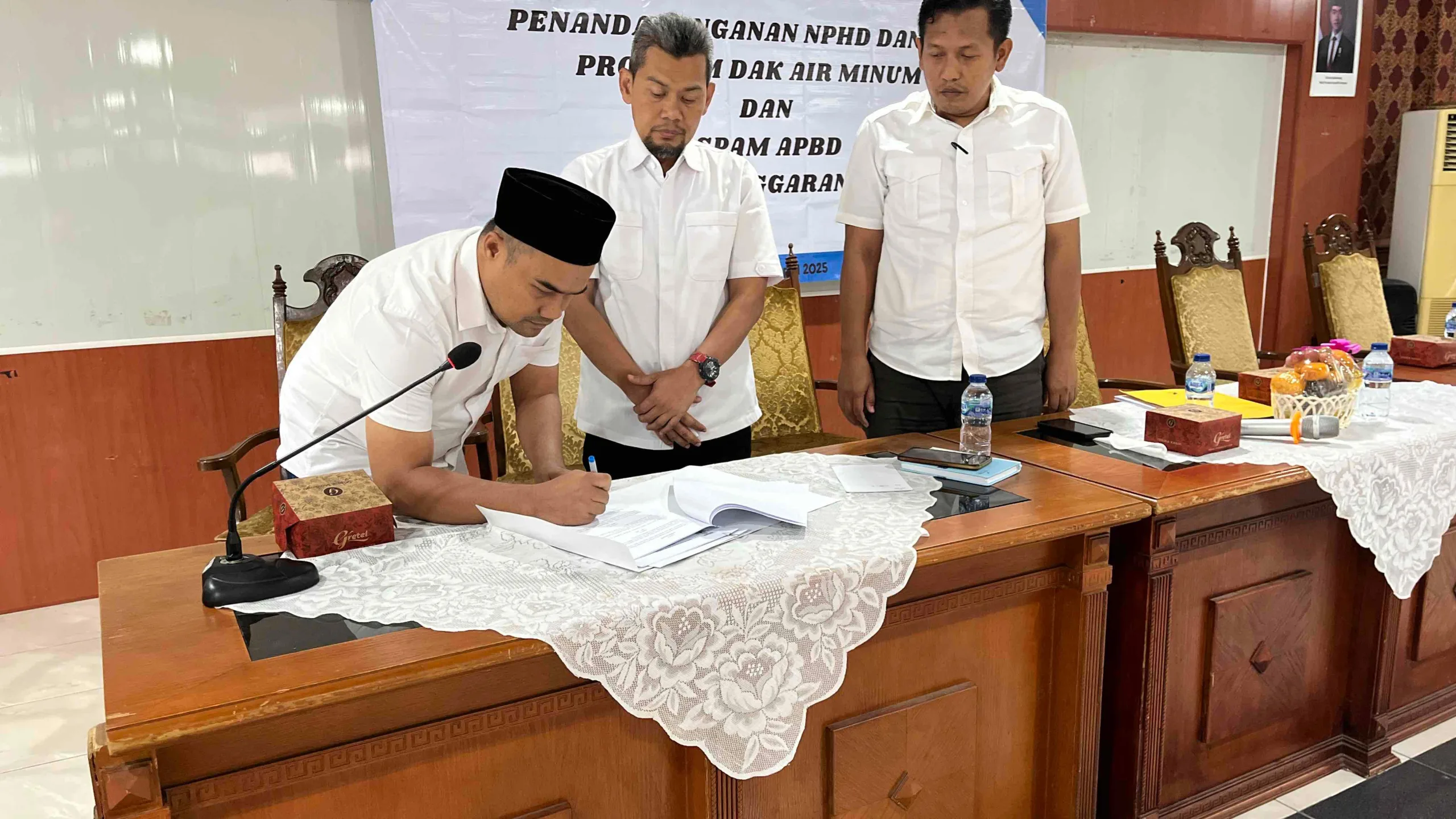 Penandatanganan Naskah Perjanjian Hibah Daerah (NPHD) dan PKS Dana Alokasi Khusus (DAK) Air Minum dan SPAM APBD Tahun Anggaran 2025 ini, DPUPR Kabupaten Serang dengan menggandeng Polres Serang Kabupaten di Aula Tb. Suwandi pada Rabu, 16 April 2025.