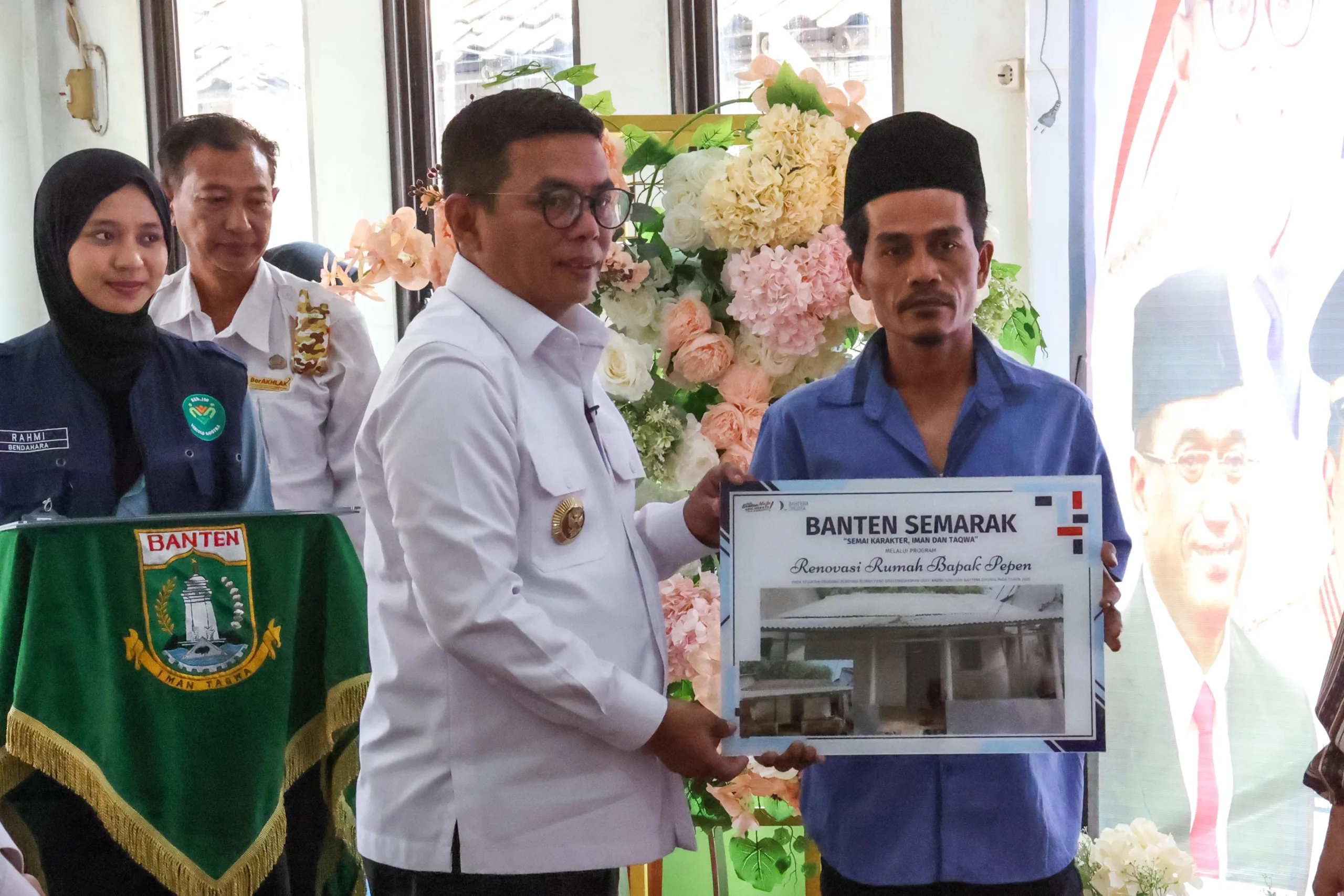 Program Pendistribusian Renovasi RTLH dan instalasi air bersih ditandai dengan gunting pita oleh Gubernur Banten Andra Soni di depan rumah hasil renovasi RTLH dan instalasi air bersih. Turut mendampingi Ketua Yayasan Bahtera Maju Indonesia Budi Karya Sumadi, anggota DPRD Provinsi Banten Wawan Suhada, pimpinan dan anggota DPRD Kabupaten Tangerang, Kepala Dinas Perumahan Rakyat dan Kawasan Permukiman Provinsi Banten M. Rachmat Rogianto, serta Ketua Badan Amil Zakat Nasional (Baznas) Provinsi Banten, Syibli Syarjaya. Usai gunting pita, Andra Soni melakukan peninjauan ke rumah Pepen, salah satu rumah hasil renovasi.