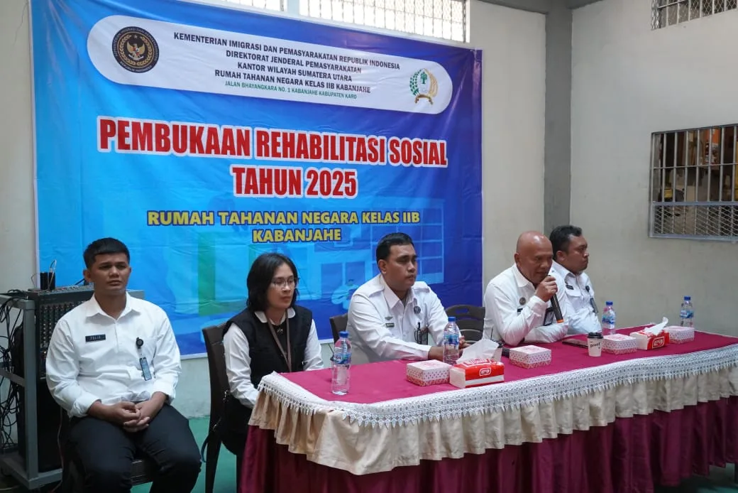 TANAH KARO, SUMUT – Rumah Tahanan Negara (Rutan) Kelas IIB Kabanjahe bersama Badan Narkotika Nasional Kabupaten (BNNK) Karo secara resmi membuka program Rehabilitasi Sosial bagi warga binaan pemasyarakatan, Rabu (13/8/2025) Pukul 10.00 WIB.