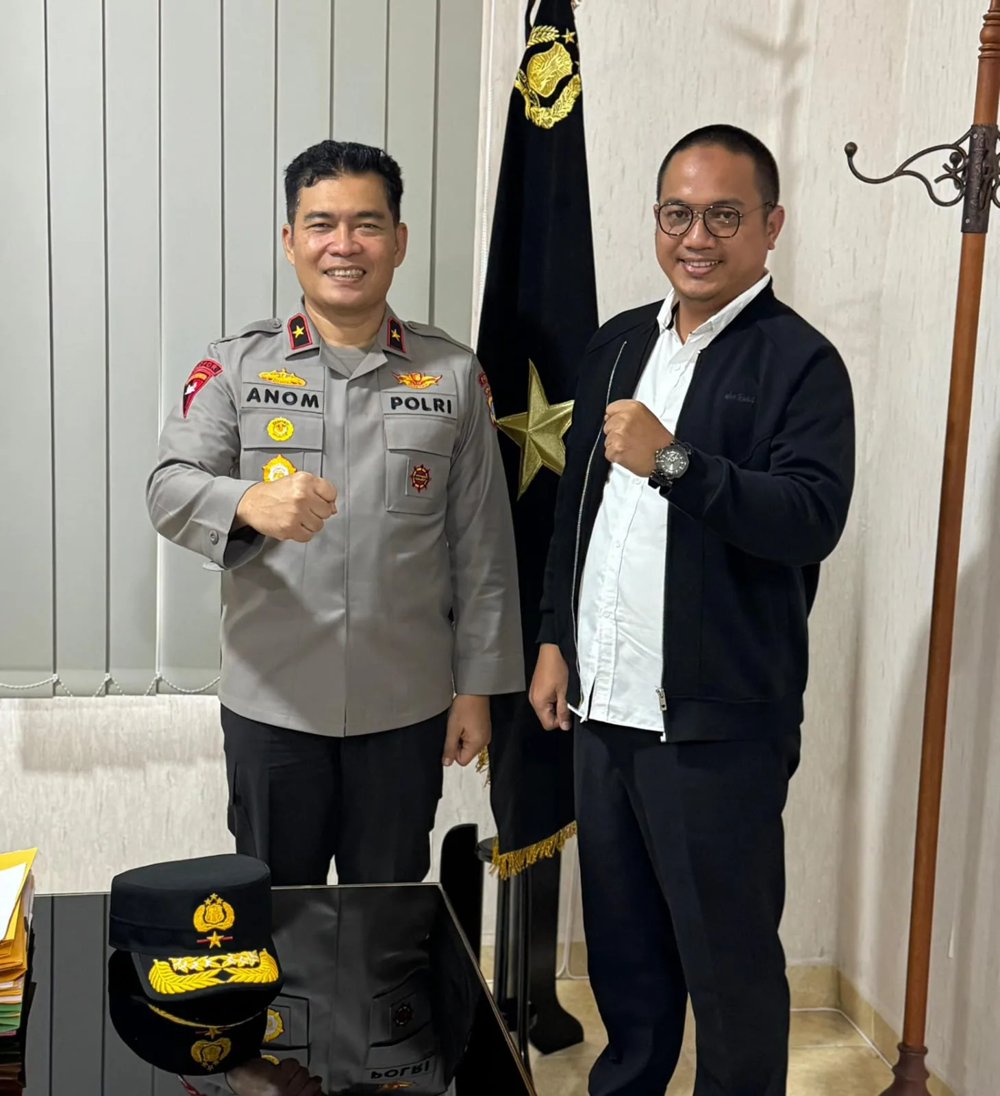 KEPRI, Djawaranews.com – Kepala Kantor Imigrasi Kelas II TPI Tanjung Balai Karimun, Dwi Avandho Farid didampingi Kepala Seksi Lalu Lintas Keimigrasian, Rery Yudhistira dan Kepala Seksi Intelijen dan Penindakan Keimigrasian, Ramono melakukan silaturahmi dengan Wakil Kepala Kepolisian Daerah Kepulauan Riau, Brigjen. Pol. Dr. Anom Wibowo, S.IK, M.Si di Markas Kepolisian Daerah Kepulauan Riau, Batam, Selasa (05/05/2025).