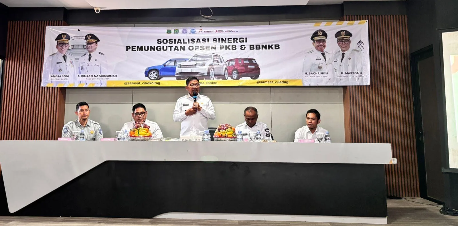 Acara dibuka secara resmi oleh Walikota Tangerang, H. Sachrudin, yang menyampaikan pentingnya sinergi antara pemerintah daerah dan lembaga terkait dalam mendukung optimalisasi pendapatan asli daerah melalui sektor pajak kendaraan. Dalam sambutannya, beliau menekankan bahwa kolaborasi ini menjadi langkah strategis dalam memberikan pelayanan terbaik kepada masyarakat sekaligus memperkuat pembangunan daerah.
