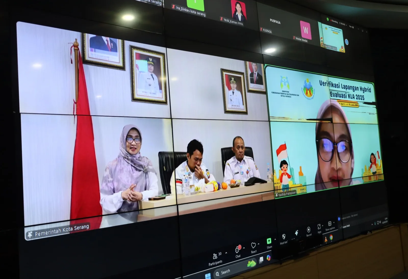 SERANG, Djawaranews.com – Menyusul penyematan Kota Serang sebagai Kota Layak Anak (KLA) kategori Pratama pada tahun 2023 silam, kini Kota Serang membidik naik kelas setidaknya ke kategori Madya. Dalam upaya tersebut, dihadiri Wakil Wali Kota Serang Nur Agis Aulia, jajaran pejabat Bappeda Kota Serang bersama pemangku kepentingan lainnya mengikuti kegiatan Verifikasi Lapangan Hybrid Evaluasi Kota Layak Anak 2025. Verifikasi dilakukan lewat zoom meeting di Kantor Diskominfo Kota Serang, Rabu (21/05/2025).