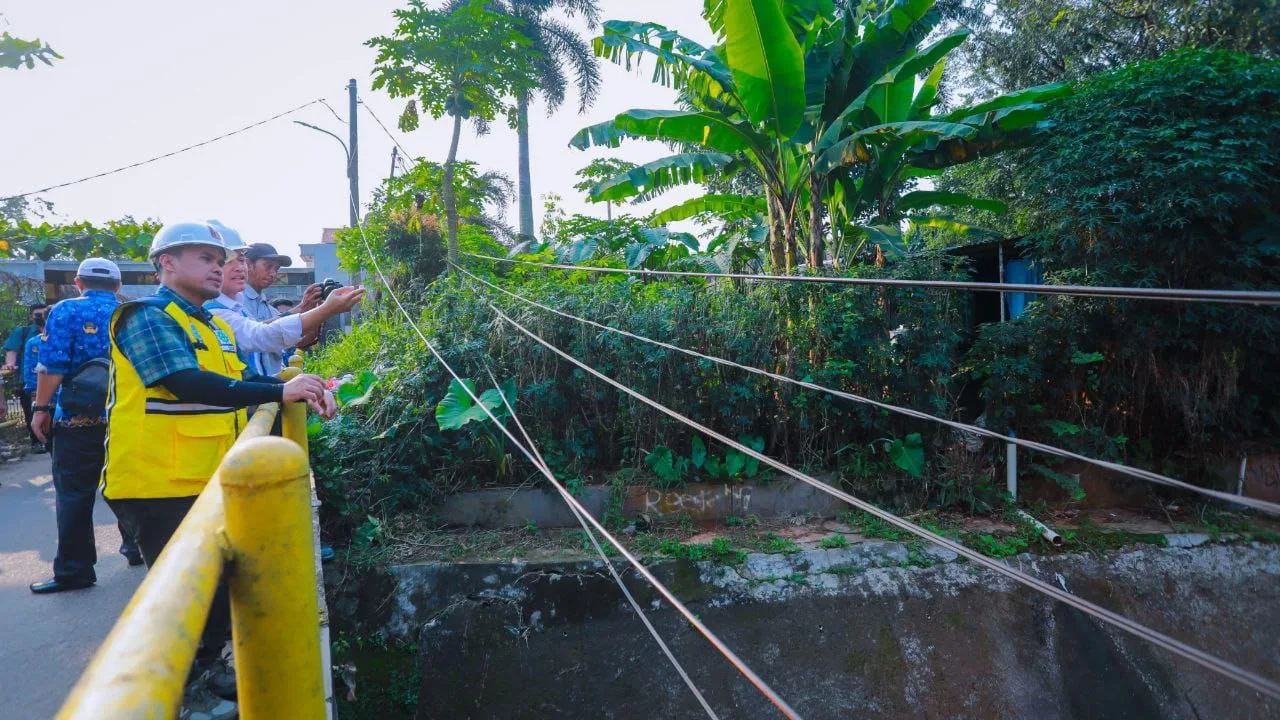 Wakil Wali Kota Tangsel Pilar Saga Ichsan meninjau langsung lokasi terdampak banjir khususnya di wilayah Rawa Buntu, Kecamatan Serpong, pada Senin (02/06/2025).
