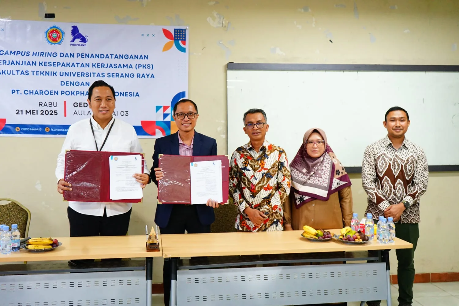 Rangkaian acara ditutup dengan penyerahan cenderamata dari Universitas Serang Raya kepada pihak PT Charoen Pokphand sebagai simbol penghargaan atas kemitraan dan kontribusi yang dibangun bersama.