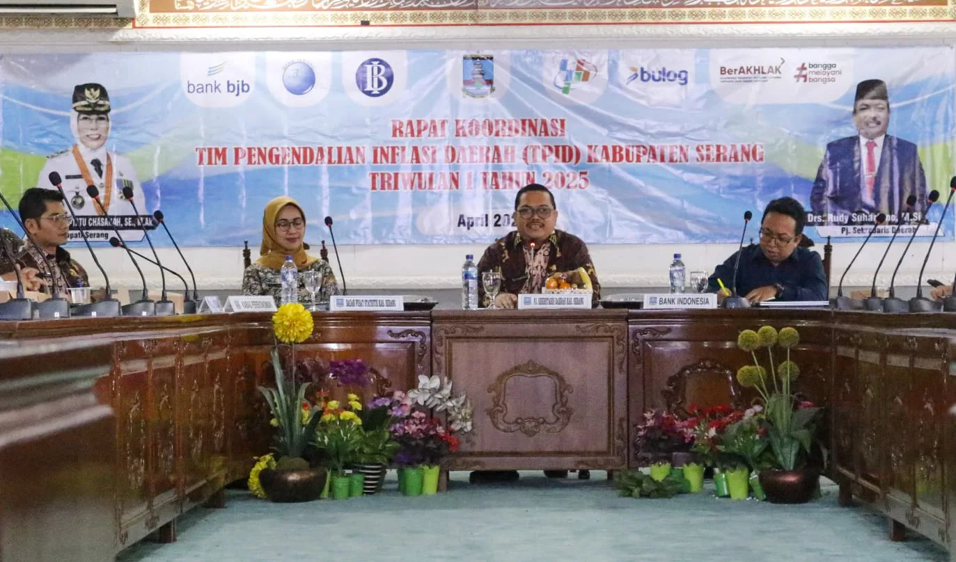 Serang, Djawaranews.com Tim Pengendalian Inflasi Daerah (TPID) Kabupaten Serang menggelar Rapat Koordinasi (Rakor) Triwulan I. Rakor dilakukan untuk evaluasi kinerja TPID dan berupaya untuk menahan laju inflasi di Tahun 2025.