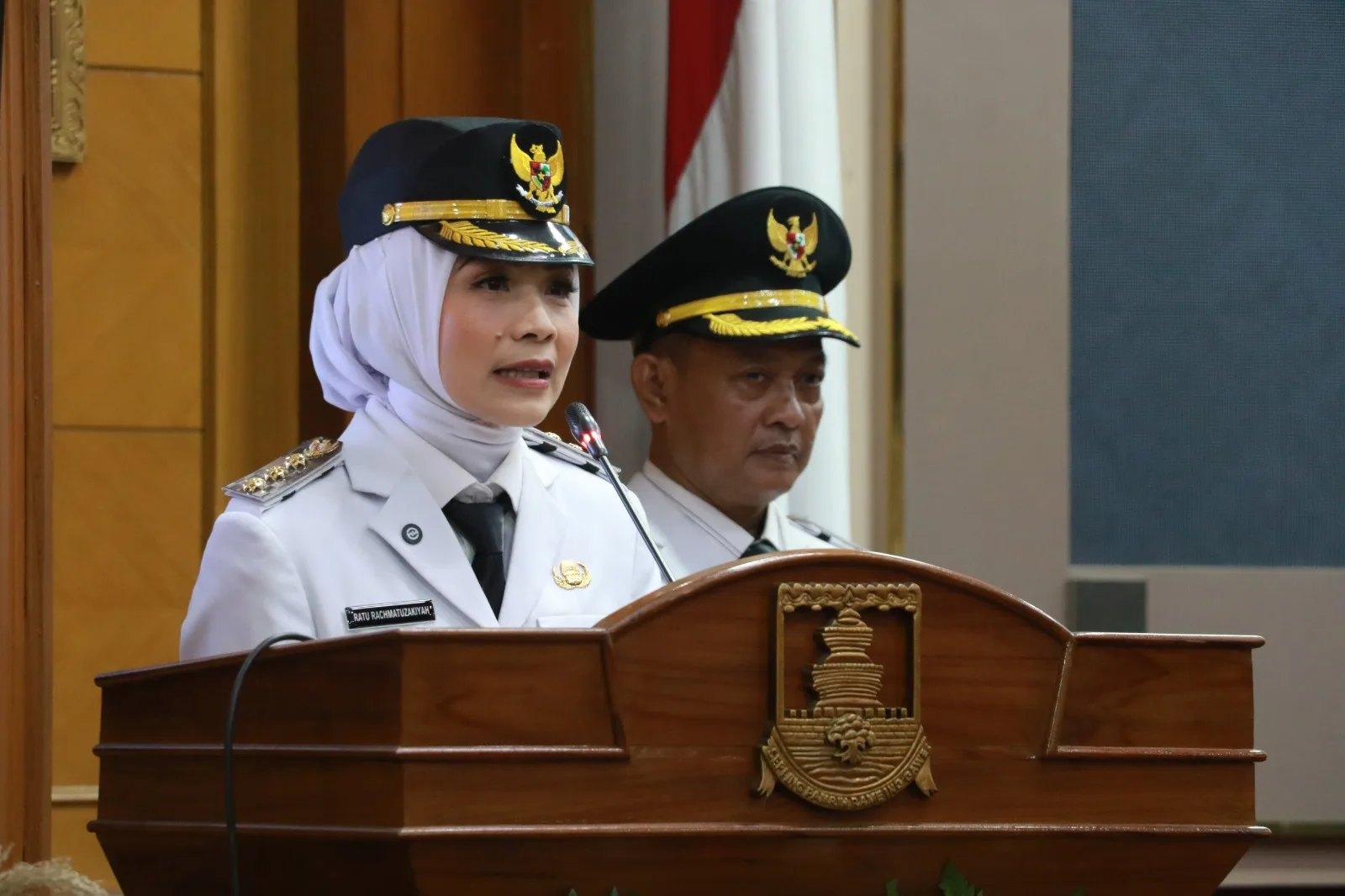 Serang, Djawaranews.com – Bupati Serang Ratu Rachmatuzakiyah menyampaikan Pidato Sambutan pada Rapat Paripurna DPRD Kabupaten Serang di gedung dewan setempat, setelah resmi dilantik bersama Wakil Bupati Serang M. Najib Hamas oleh Gubernur Banten Andra Soni pada Selasa, 27 Mei 2025. Dalam pidatonya, Ratu Rachmatuzakiyah menyampaikan 9 program prioritas singkat dalam 100 hari kerja ke depan.