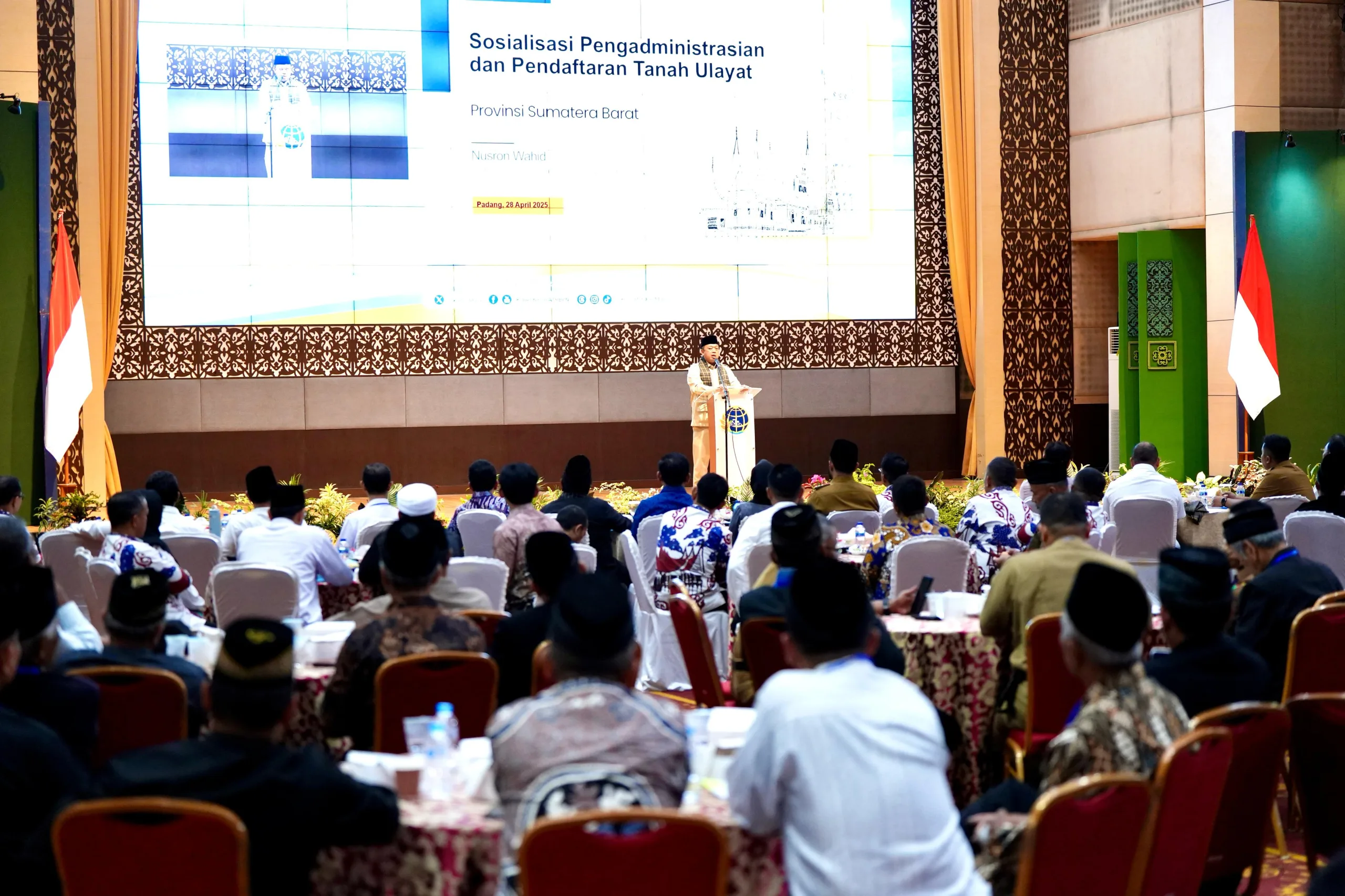 Padang, Djawaranews.com – Menteri Agraria dan Tata Ruang/Kepala Badan Pertanahan Nasional (ATR/BPN), Nusron Wahid, secara resmi membuka kegiatan Sosialisasi Pengadministrasian dan Pendaftaran Tanah Ulayat di Provinsi Sumatera Barat, pada Senin (28/04/2025). Sosialisasi ini menjadi bagian dari upaya pemerintah untuk memberikan pengakuan dan perlindungan hak bagi masyarakat hukum adat.